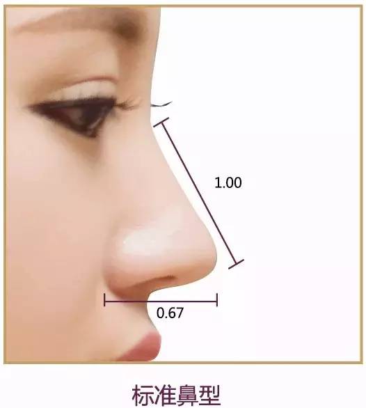 理想的外鼻长度,为面部长度的1/3,鼻头一般6~7.5厘米,鼻子长度与鼻头比例呈1:0.67。
